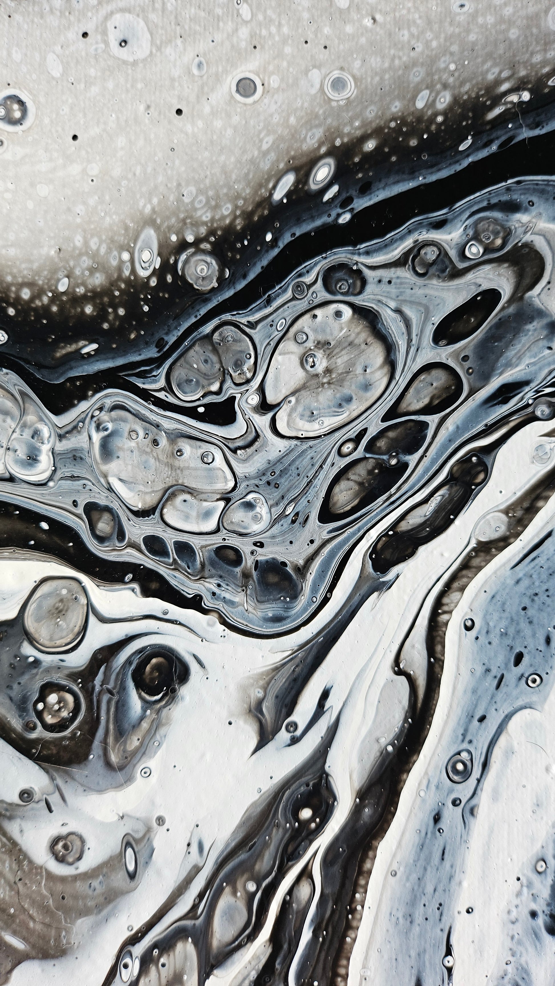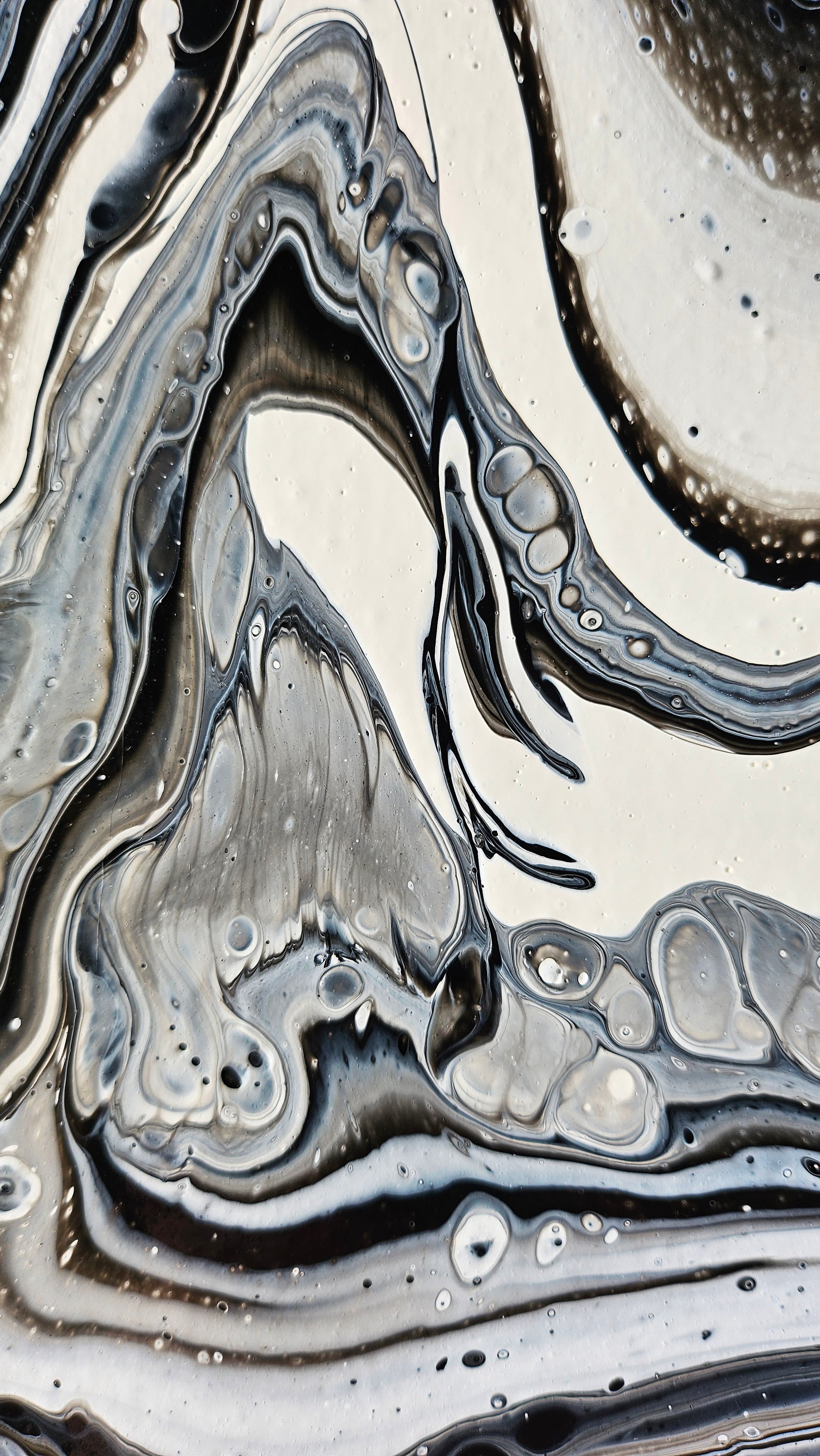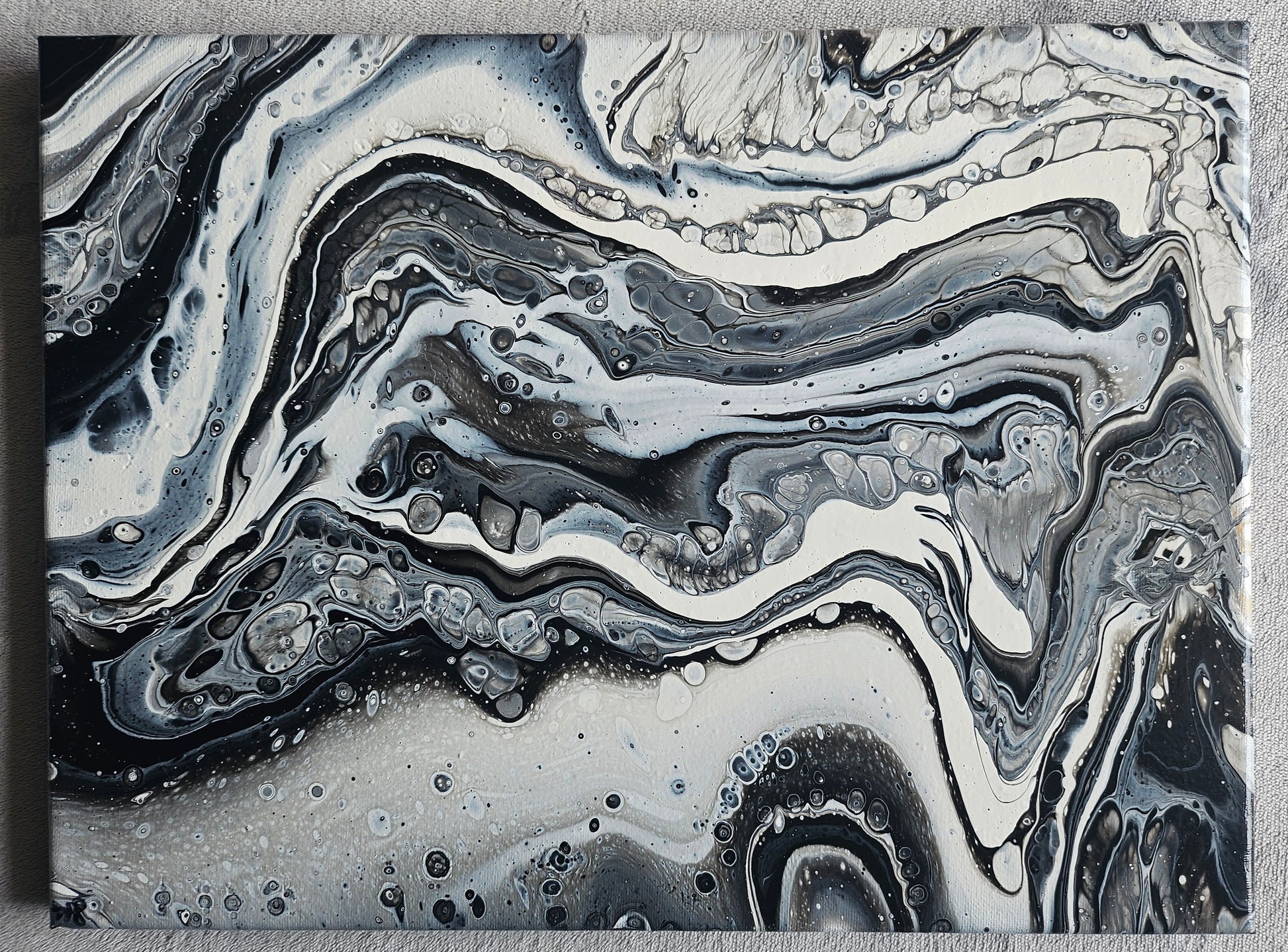 16x12 Monochrome swirls evoke geological memory and emotional erosion, capturing a moment that feels both ancient and immediate. The composition resists chronology, offering instead a contemplative stillness where chaos has softened into reflection.
