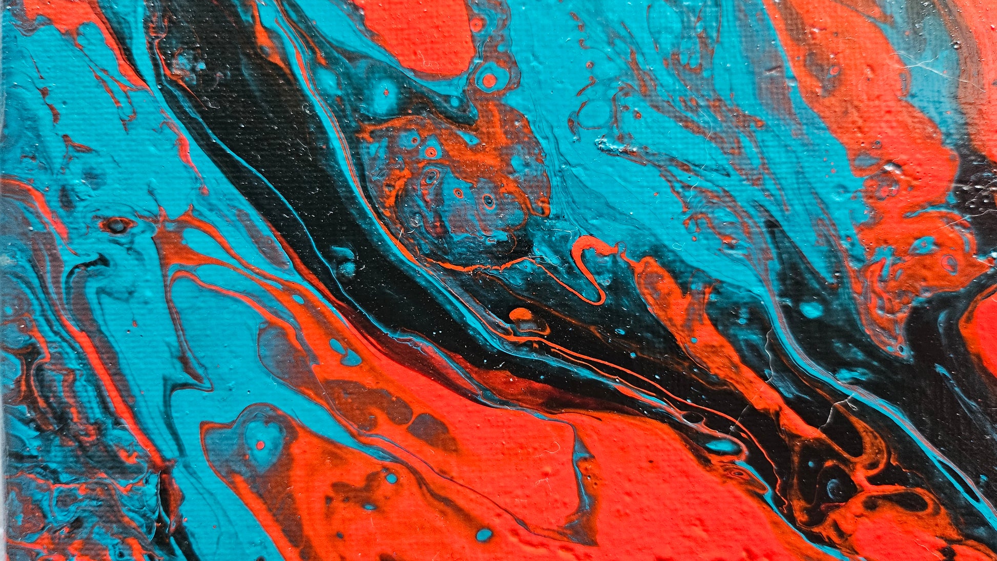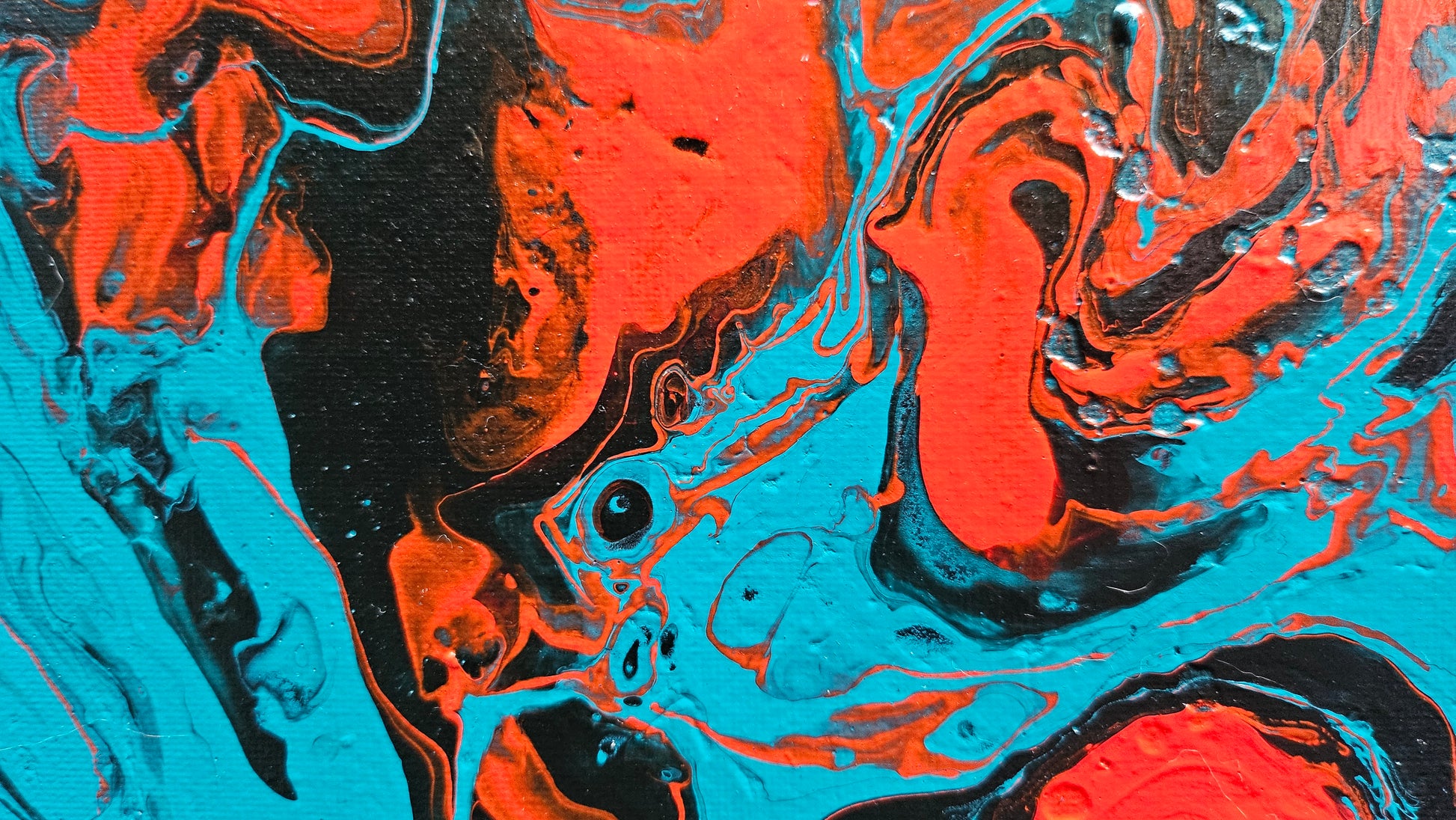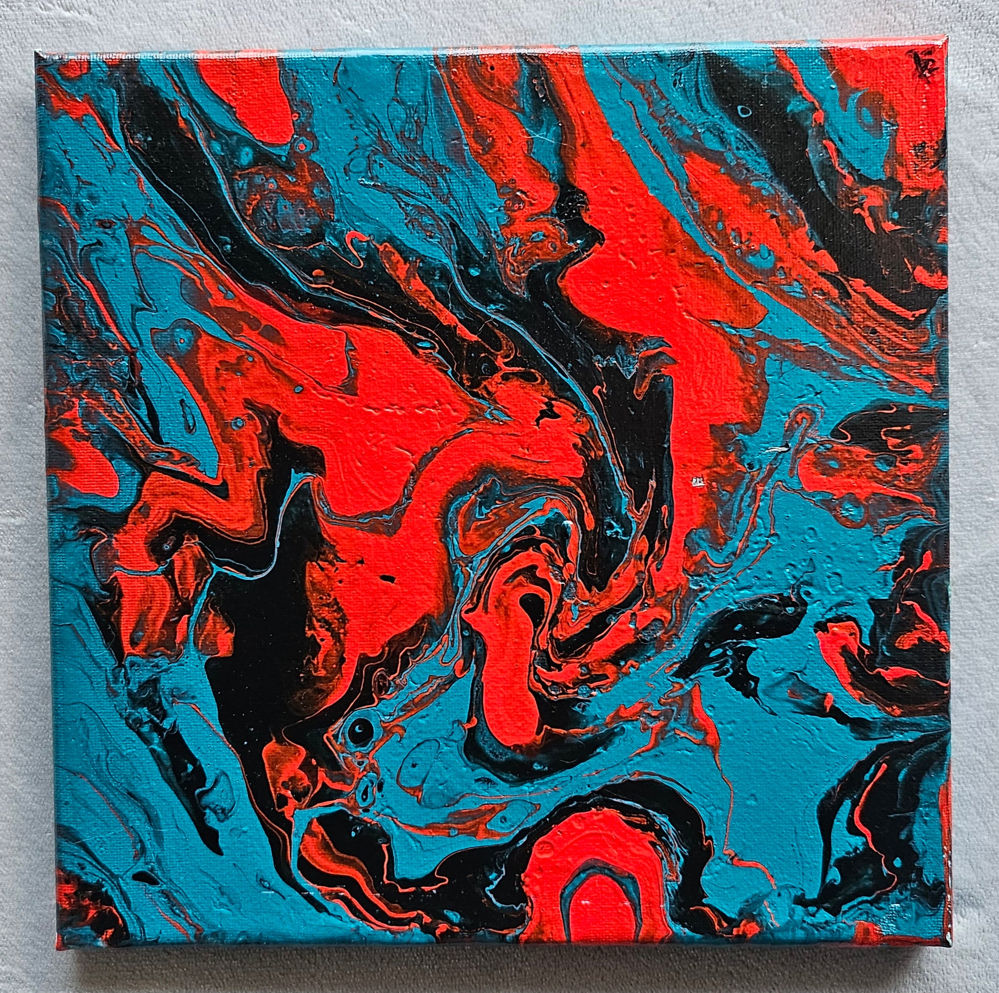 10x10 canvas with the stark red and blue with the accent of black giving the effect of a hurricane coming alive.