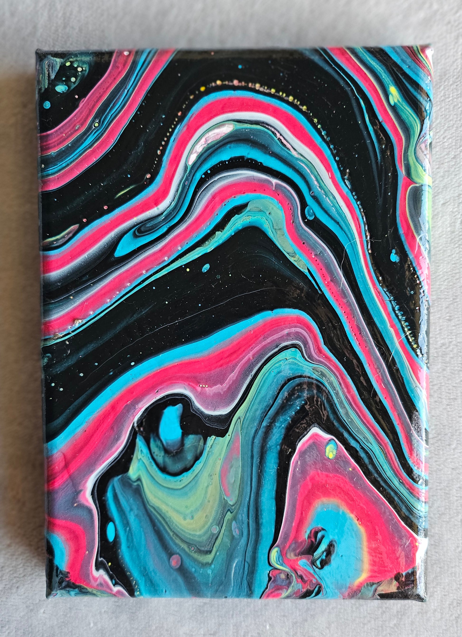 7x5 a small canvas that takes you on a short journey across the galaxy into a crescendo of colors that are eager for the eyes to see.