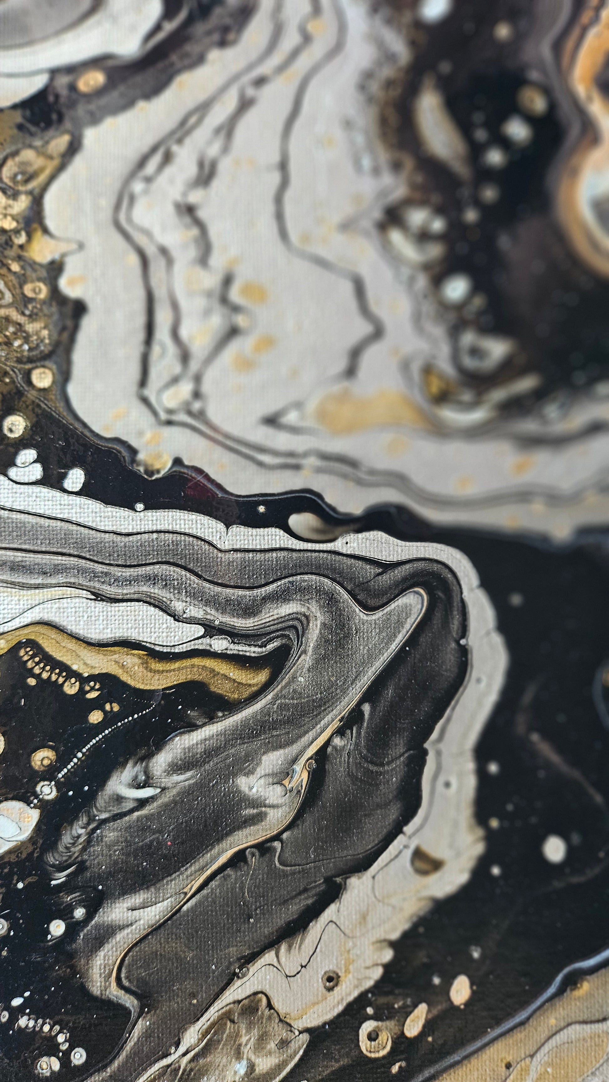 10x10 a glossy canvas that dance and flow with the electric colors. Taking you on a journey of colors that bursts with vibrancy.